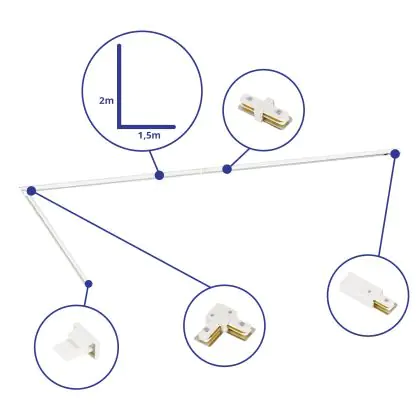 | Herstellername | Complete L shaped 1-Phase Track Set White – 1.5 x 2 meters incl. End Cap, Power Connector and L-Con | |