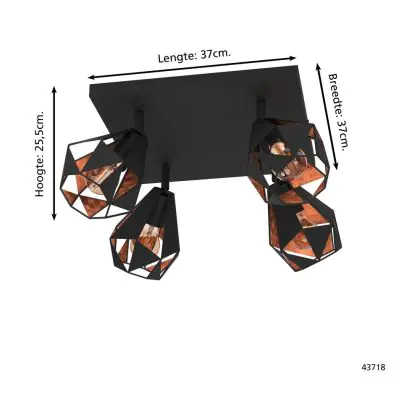 Eglo Deckenleuchte Carlton 7 Stahl Schwarz Bernstein | IP20 - Geeignet für 4x E27