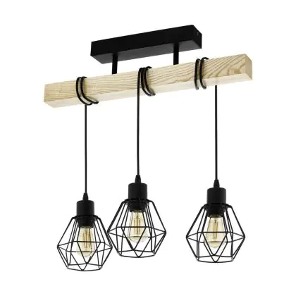 Eglo Deckenleuchte Townshend 5 Stahl Holz Schwarz | IP20 - Geeignet für 3x E27