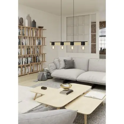 Eglo Pendelleuchte Bailrigg Stahl Holz Schwarz Braun | IP20 - Geeignet für 4x E27