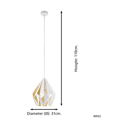 Eglo Pendelleuchte Carlton 1 Stahl Weiß Gold | IP20 - Geeignet für 1x E27