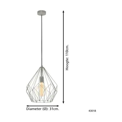 Eglo Pendelleuchte Carlton Stahl Grau | IP20 - Geeignet für 1x E27