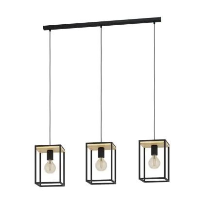 Eglo Pendelleuchte Libertad Stahl Holz Schwarz Braun | IP20 - Geeignet für 3x E27