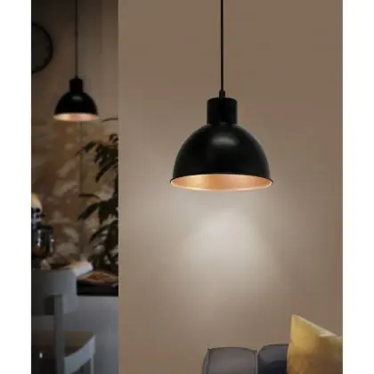 Eglo Pendelleuchte Truro 1 Stahl Schwarz Bernstein | IP20 - Geeignet für 1x E27