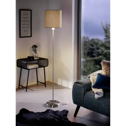 Eglo Stehlampe Pasteri Stahl Satin-Nickel Taupe | IP20 - Geeignet für 1x E27