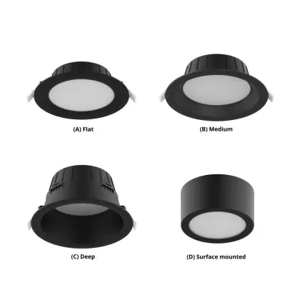 | Herstellername | Budgetlight LED Downlight Hera Flat Recessed Black 15W 1500lm 80D - 827-830-840 CCT | 166mm - Cutout 144m | |