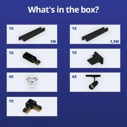 | Nom du fabricant | Complete L shaped 1-Phase Track Set Black incl. 4x Spot fixture + GU10 2700K 3W Dim - 1 x 1,5 meter | |