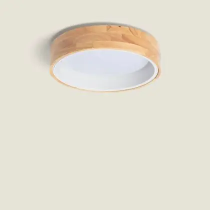Bright Choice Plafonnier Ronde Bois Métal Blanc 15W 1000lm - 830-840-860 CCT