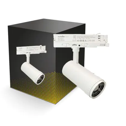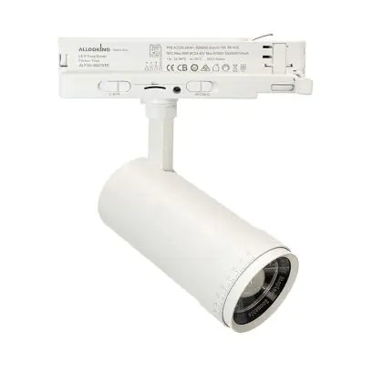 Le Bright Choice Spot LED Sur Rail Blanc Zoomable 30W 3000lm 15-60D - 927-930-940 CCT est luminaire d’accentuation. Plus précisément, il s’agit d’un spot LED sur rail triphasé. Ce spot Bright Choice utilise la technologie LED Intégré lui permettant d’avoir une durée de vie beaucoup plus longue (50000 heures) qu’un luminaire classique. De plus, avec la technologie LED vous réaliserez des économies d’énergie importantes et donc des économies de coûts. Ce spot LED dispose d’un excellent indice de rendu des couleurs comprit entre 90-99 Ra et propose une couleur de lumière de 2700K - 3000K - 4000K CCT. Ce type d’éclairage est apprécié dans les restaurants, boutiques et les autres différents commerces.