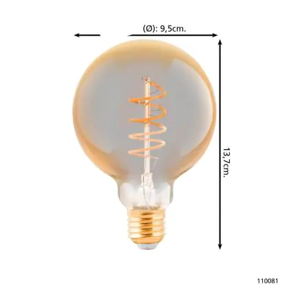 Description Eglo LED Globe E27 Filament Ambre 4W 245lm - 820 | Dimmable - Remplacement 25W
