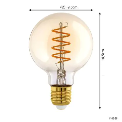 Description Eglo LED Globe E27 Filament Ambre 8W 806lm - 827 | Dimmable - Remplacement 60W