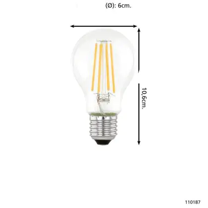 Cette ampoule Eglo LED Poire E27 Filament Claire 7.3W 806lm - 830 | Remplacement 60W avec son efficacité lumineuse de lumen par watt vous permettra de profiter d’un éclairage de qualité. Avec sa durée de vie de 15000 heures, vous n’aurez pas à vous soucier de son remplacement avant quelques années.