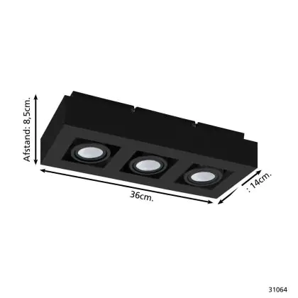 Eglo Plafond Spot Mendoza Échantillon Noir 14.1W 1035lm - 830 | Dimmable - Convient pour GU10