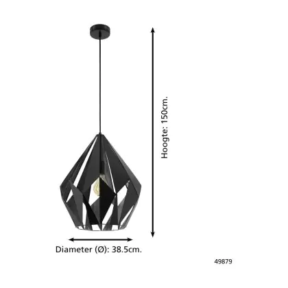 Eglo Suspension Luminaire Carlton 1 Échantillon Noir Argent | IP20 - Convient pour 1x E27