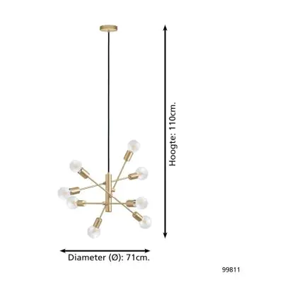 Eglo Suspension Luminaire Gradoli 1 Échantillon Dorée | IP20 - Convient pour 8x E27