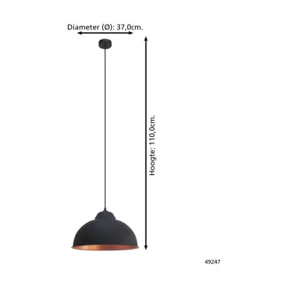 Eglo Suspension Luminaire Truro 2 Échantillon Noir Cuivre | IP20 - Convient pour 1x E27