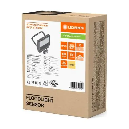Description Ledvance Projecteur LED Aluminium Noir 8W 1100lm 100D - 830 | IP65 - Détecteur De Mouvement Et De Lumière - Symétrique