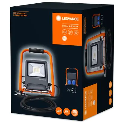 Description Ledvance Projecteur LED Projecteur de chantier Foncé Gris 30W 2700lm 110D - 840 | IP54 - 2 Power Outlets - Symétrique