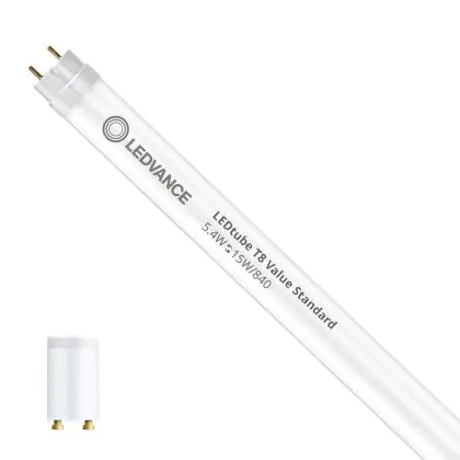 Description Ledvance Tube LED T8 Value (EM/Mains) Standard Output 5.4W 650lm - 840 | 44cm - Remplacement 15W