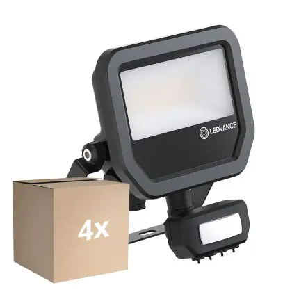 Description Lot 4x Ledvance Projecteur LED Aluminium Noir 17W 2200lm 100D - 830 Blanc Chaud | IP65 - Détecteur de Mouvement et de Lumière - Symétrique
