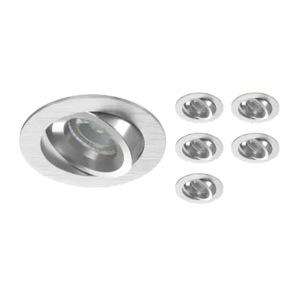 Lot 6x Encastré Spot Drome MR16 inclinable Aluminium | Diamètre 69mm - GU10 Culot est un spot LED encastrable. Ce luminaire est conçu pour un éclairage d’accentuation pour un usage domestique ou bien professionnel. Fixture Retrofit, ce spot LED Budgetlight en Aluminium a besoin d’une place nécessaire de 69mm de largeur et 75mm de profondeur. Ce luminaire est compatible avec une ampoule GU10, il est important de faire attention si vous décidez de changer d’ampoule.
