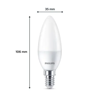 | Nom du fabricant | Box 6 stuks - Philips LED Kaarslamp Mat - 40 W - E14 - Warmwit licht | |