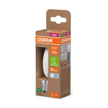 Cette ampoule Osram LED Classic E14 Bougie Filament Dépolie 2.2W 470lm - 840 | Remplacement 40W avec son efficacité lumineuse de lumen par watt vous permettra de profiter d’un éclairage de qualité. Avec sa durée de vie de 50000 heures, vous n’aurez pas à vous soucier de son remplacement avant quelques années.