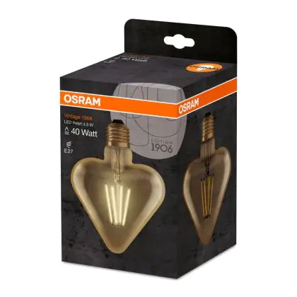 Cette ampoule Osram Vintage 1906 LED E27 Heart Filament Dorée 4.5W 470lm - 825 | Remplacement 40W est l’alternative idéale pour la remplacement de votre ampoule classique de 40 W. La technologie LED intégrée vous offrira de nombreux avantages. Les ampoules à incandescence traditionnelles ont une durée de vie limitée. Cette alternative LED vous permettra de profiter d’un éclairage durable et fiable.