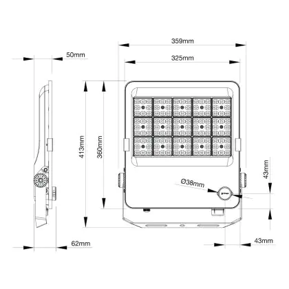 | Nom du fabricant | Budgetlight LED Floodlight ProBeam V2.0 170W 23800lm 60D - 830-840-865 CCT | IP66 - Symmetrical | |